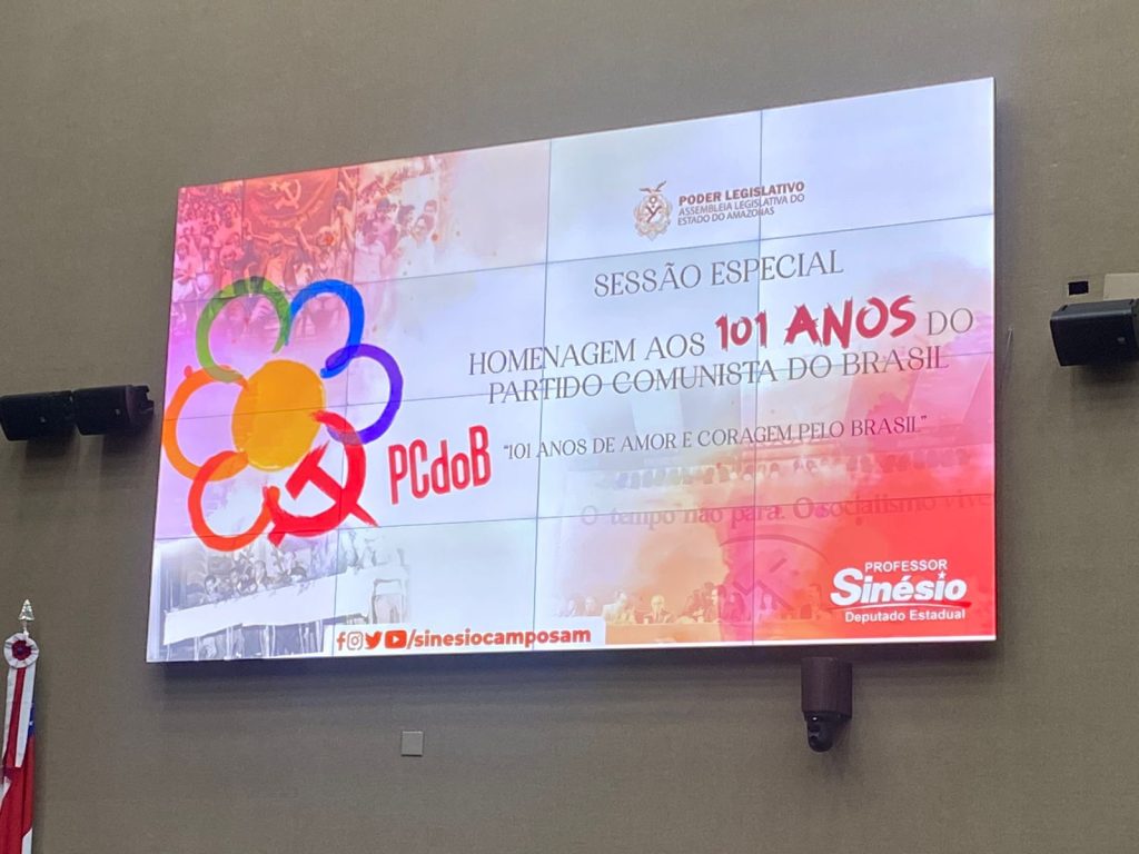 MANAUS – O Partido Comunista do Brasil (PCdoB) teve os seus 101 anos de fundação homenageados nesta terça-feira, 25, em solenidade na Assembleia Legislativa do Estado do Amazonas (Aleam). A cerimônia foi proposta pelo deputado estadual Sinésio Campos (PT).