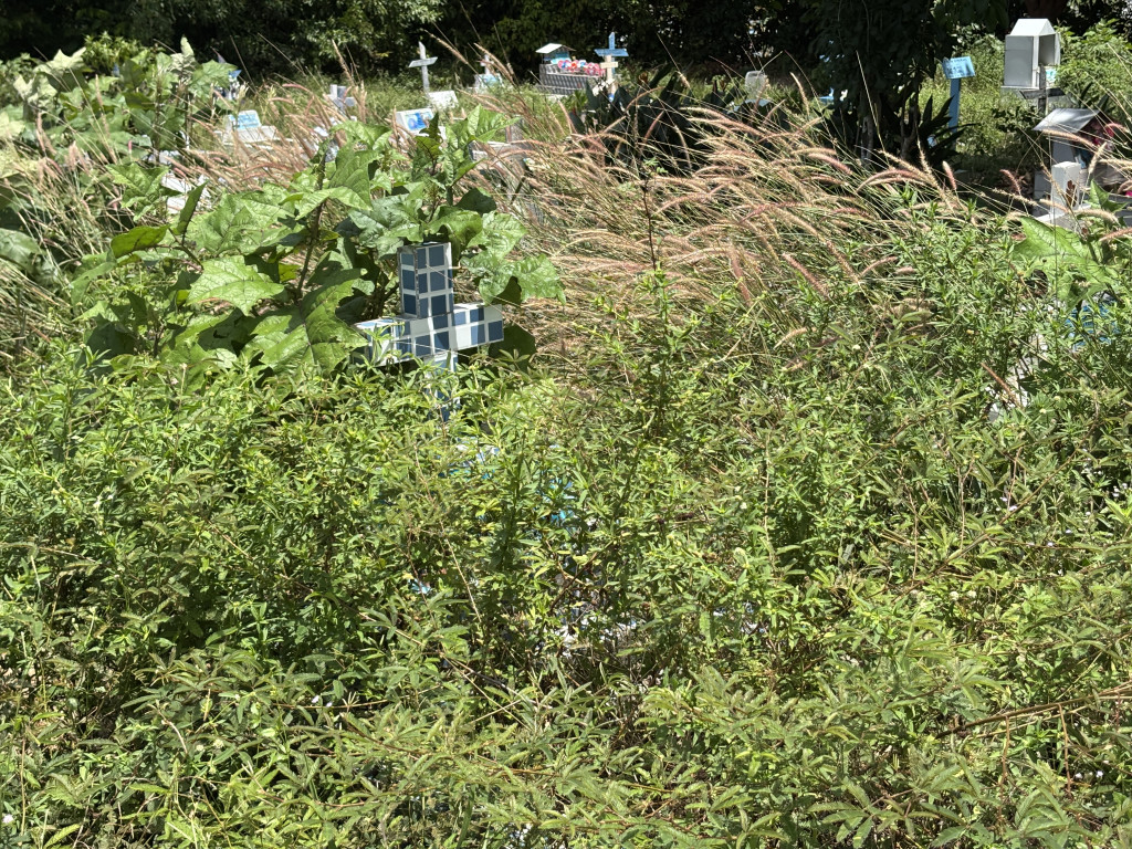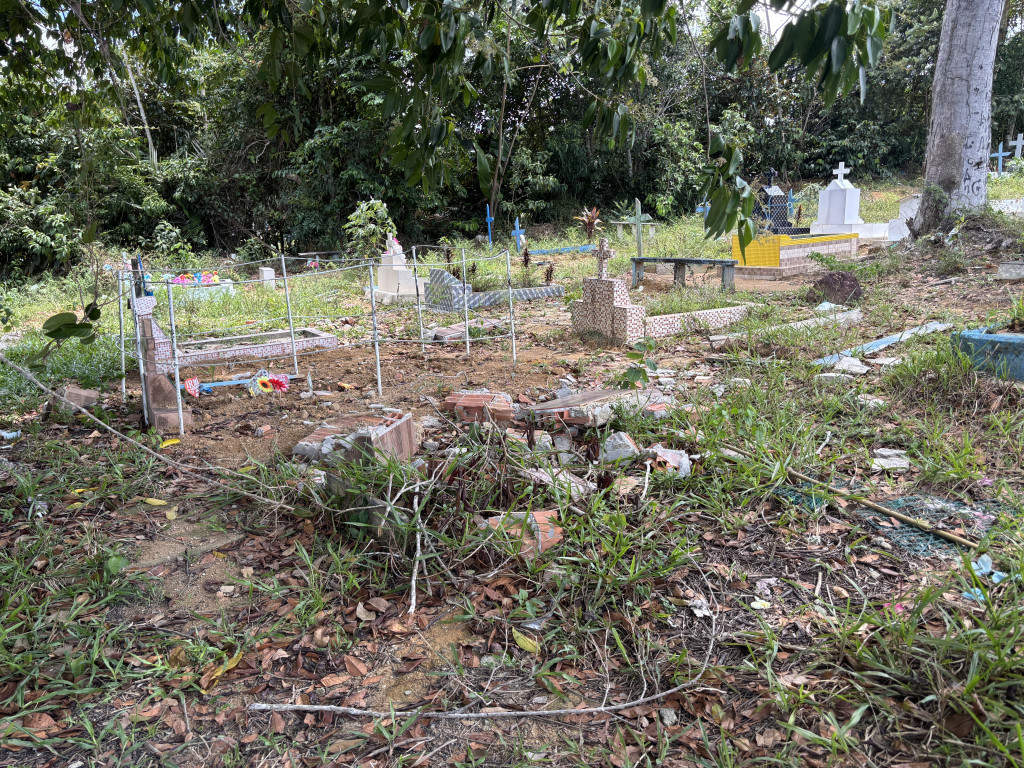 A vegetação alta indica que o local não possui manutenção há algum tempo. Além de lixos, pedaços de madeiras, garrafas plásticas e entulhos, em outro espaço há uma colônia de formigas externa ao solo. Não foi possível identificar se no local, especificamente onde surgiu o formigueiro, há algum túmulo.