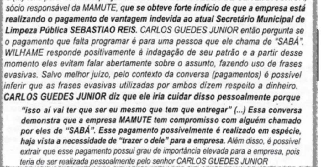 Sabá é apontado como um dos principais beneficiários do esquema de propina investigado, segundo documento da PF. Interceptações telefônicas indicam que o secretário teria recebido pagamentos em espécie da empresa Mamute Conservação, contratada pela Prefeitura de Manaus.
