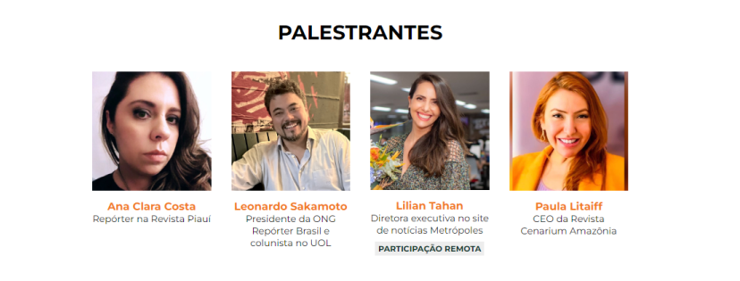 Também no dia 1º, a correspondente da CENARIUM no Pará, Daleth Oliveira, participará da palestra “Jornalismo investigativo local a serviço das cidades“, ao lado da fundadora do Marco Zero Conteúdo e professora da Universidade Católica de Pernambuco (Unicap), Carolina Monteiro; do jornalista e criador do site Vocativo.com, Fred Santana; e do repórter do Matinal do Rio Grande do Sul Pedro Nakamura, com mediação do professor e jornalista, Antonio Rocha Filho.