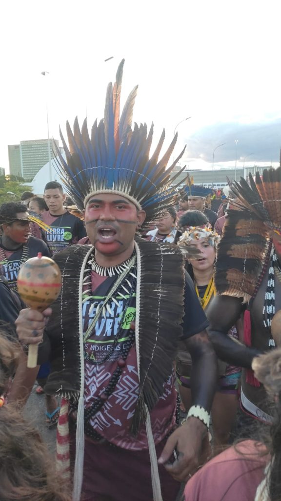 “É uma traição sem tamanho à própria Constituição brasileira. Meu recado é para o governo Bolsonaro: que nós estamos aqui reivindicando o que é nosso, o que é garantido no artigo 231, que fala das nossas crenças e das nossas terras, costumes e tradições que nós devemos preservar, e esse governo tem que respeitar”, protestou.