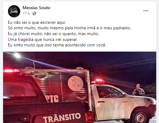 MANAUS – “Uma tragédia que nunca irei superar”, a declaração é de um familiar das vítimas mortas em um acidente de trânsito na noite dessa sexta-feira, 3, na Avenida das Torres, bairro Novo Aleixo, Zona Norte de Manaus. Marivaldo Pereira, 48, e a filha, a estudante de Direito da Universidade Federal do Amazonas (Ufam), Annie Karollyne Santos Pereira, 19, morreram após bater contra um caminhão.