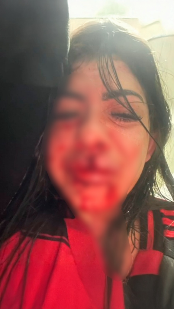 Em outro vídeo publicado pela advogada Adriane, a vítima aparece de máscara, sentada em uma cadeira da unidade policial, em Manaus. A jurista chega a informar que ela falaria sobre o caso, mas, abalada, Kaline não consegue prosseguir com o pronunciamento e diz apenas que as agressões ocorreram “na volta para casa”.