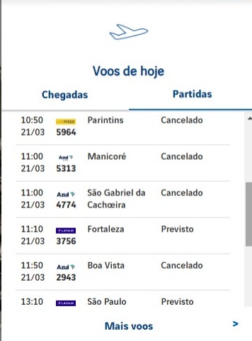Seis voos foram cancelados e outros sete tiveram ajustes no horário. Os voos cancelados tinham como locais de partida o município de Itaituba, no Estado do Pará; Parintins, Manicoré e São Gabriel da Cachoeira, no Amazonas; e Boa Vista, no Estado de Roraima. Um voo com saída de Manaus rumo a Itaituba também foi suspenso.