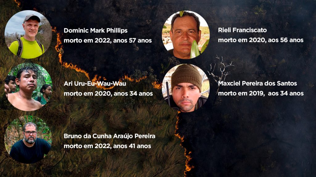 O primeiro foi Maxciel Pereira dos Santos, morto em 2019 com um tiro no pescoço, na principal avenida de Tabatinga (AM), também próximo ao Vale do Javari. Ele tinha 34 anos e lutava pela proteção das Terras Indígenas. Já em Rondônia, um ano depois, o indigenista Rieli Franciscato morreu mediando um conflito entre indígenas isolados, na região do município de Seringueiras, e garimpeiros que estavam invadindo o território. Ele tinha 56 anos e foi atingido, acidentalmente, por uma flecha. Agora, em 2022, o ‘caso Bruno e Dom’, com vidas interrompidas aos 41 e 57 anos de idade, respectivamente.