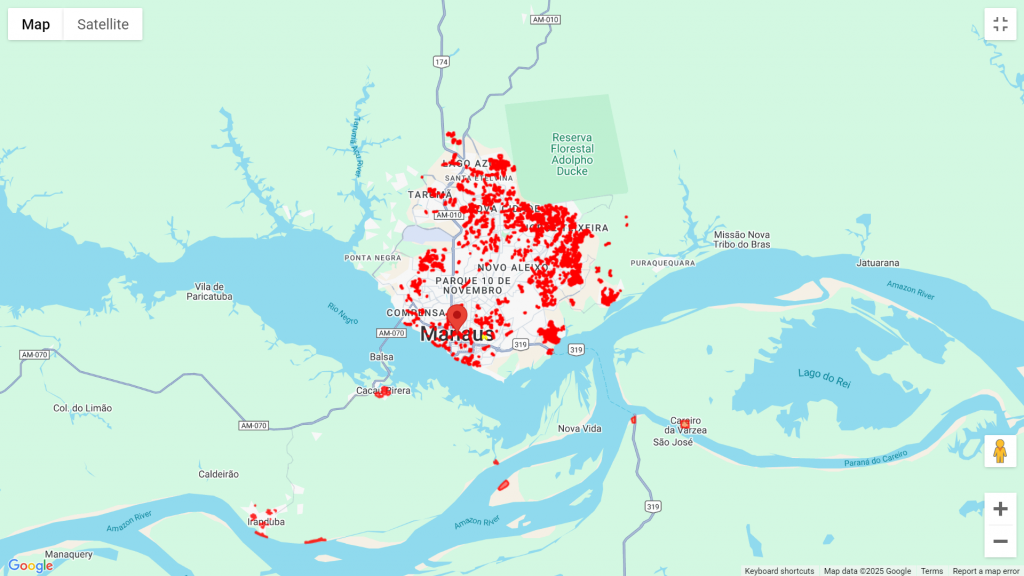 Manaus tem mais de 600 áreas de risco mapeadas. As áreas de risco são aquelas que têm probabilidade de sofrer efeitos adversos, como enchentes, deslizamentos e inundações.
