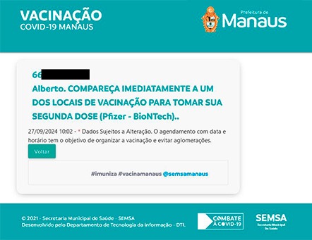 Conforme dados da Secretaria Municipal de Saúde (Semsa), o policial militar só tomou a primeira dose da vacina Pfizer – BioNTech. A secretaria solicita que o candidato compareça “imediatamente a um dos locais de vacinação para tomar sua segunda dose”.