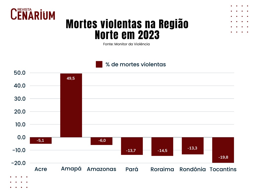 MANAUS (AM) – O Amapá, um dos Estados que integra a Região Norte, teve aumento de 49,5% de mortes violentas entre 2022 e 2023, saltando de 222 para 332, segundo dados do Monitor da Violência, o que representa o maior aumento do País.