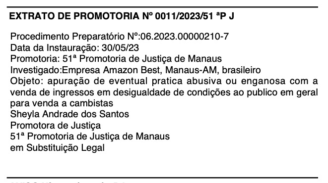 O Ministério Público do Estado do Amazonas (MP-AM) instaurou uma investigação para apurar o direcionamento de ingressos do Festival Folclórico de Parintins a cambistas. O alvo da investigação é a empresa Amazon Best.
