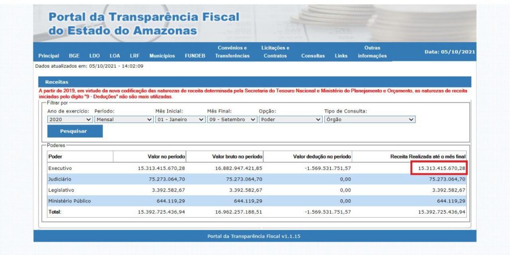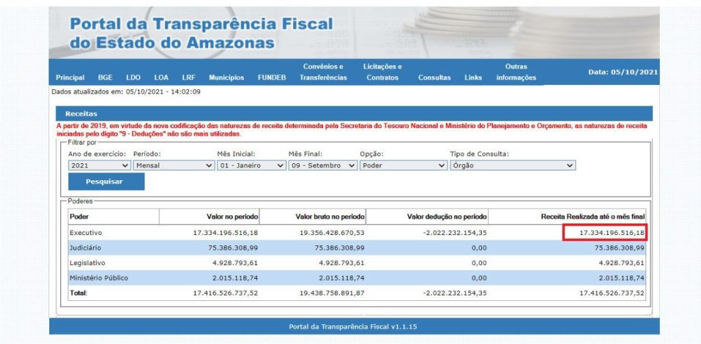 Já outras tiveram queda na receita corrente. É o caso do Departamento Estadual de Trânsito (Detran-AM), órgão vinculado à Secretaria de Estado da Segurança Pública (SSP), que, em 2021, somou R$ 70,56 milhões, dos quais R$ 45,3 milhões foram por meio de serviços de registro, certificação e fiscalização. No ano passado, no mesmo período, foram arrecadados R$ 90,06 milhões.