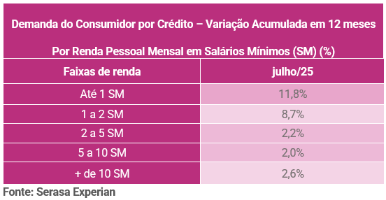 A pesquisa da Serasa mostrou, ainda, que os brasileiros de menor renda são os que mais buscaram crédito no último ano: quem recebe até um salário-mínimo apresentou alta de 11,9% na procura, enquanto entre aqueles com renda de um a dois salários-mínimos o aumento foi de 8,7%. No Norte, essa pressão é intensificada pelos indicadores sociais e econômicos da região.