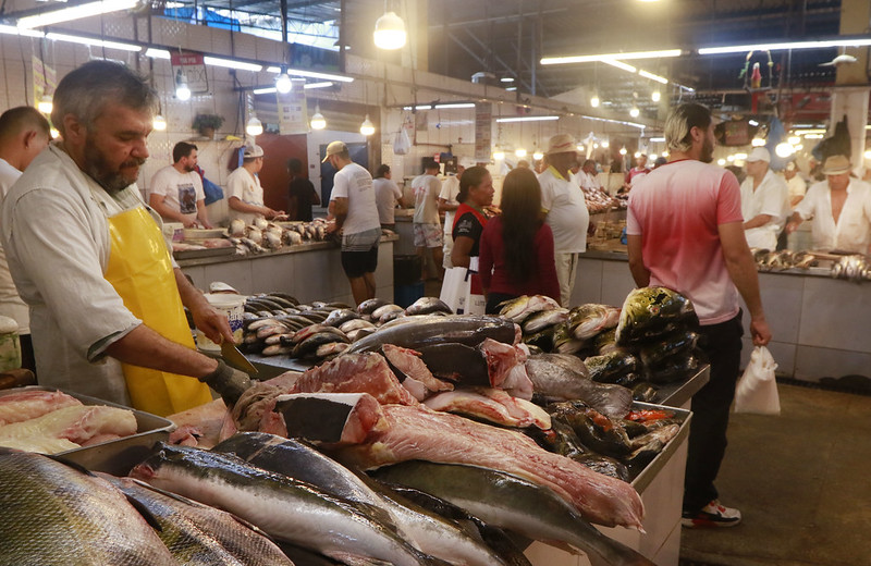 É o que conta Everton Silva, 26, que trabalha há seis anos na Feira da Manaus Moderna. “Graças a Deus já aumentou bastante a movimentação. As pessoas estão procurando comprar em uma quantidade maior e mais variada. Eles levam tanto o pirarucu quanto o tambaqui e os outros peixes, porque aí eles variam o cardápio na semana“, afirma. Nas bancas é possível comprar por R$ 17 a parte da barriga do pirarucu e R$ 25 a parte do filé (lombo).