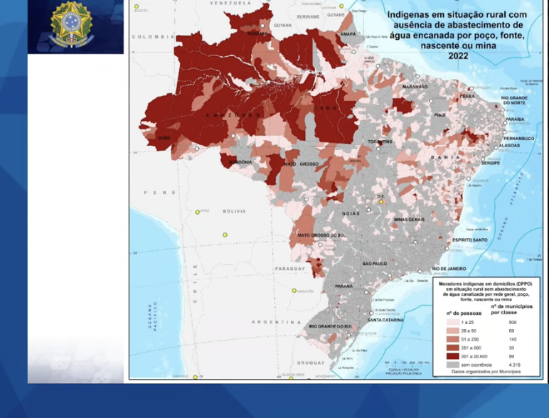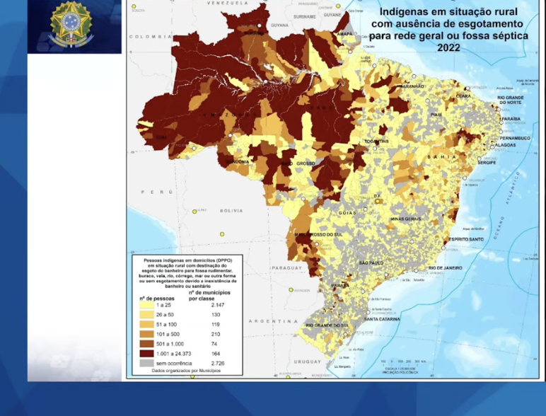 “No entanto, o Censo 2022 mostra que, mesmo residindo em áreas urbanas e fora de seus territórios oficialmente reconhecidos, a população indígena tem menor acesso aos serviços de saneamento básico que o conjunto da população do País”, explicou.