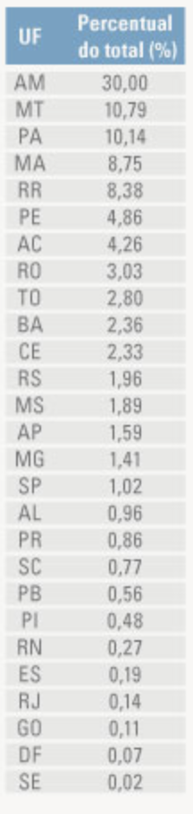 Quando considerada as localidades fora de terras indígenas, o Amazonas também lidera, com 1.078 identificadas (41,93%). Pernambuco vem em segundo, com 237 (56,97%), seguida do Pará, com 187 (21,52%), Ceará, com 159 (79,50%), e Bahia, com 138 (68,32%).