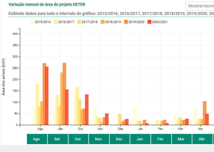 De acordo com o ambientalista Carlos Durigan, o período de seca da Amazônia que se aproxima preocupa ainda mais no que tange o cenário do desmatamento. “Ver esse aumento significativo agora entre março e abril é preocupante, porque desmatamento significa área queimada durante o verão amazônico. Nesse período de chuva, as pessoas estão fazendo a derrubada da floresta, mas é quando o período de seca se estabelecer que vamos ver um índice ainda maior de desmatamento com as queimadas”, explicou o Durigan.