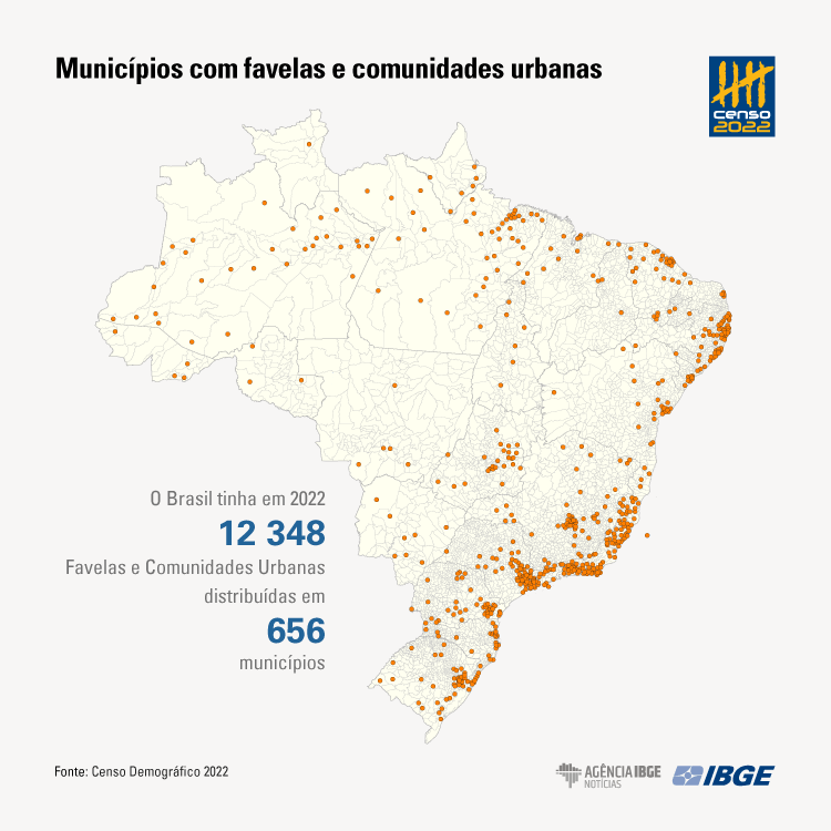 O IBGE informou que pesquisa as Favelas e Comunidades Urbanas desde 1950 e vem aprimorando a abordagem deste tema nos censos demográficos. “Há uma dificuldade inerente para dimensionar esses territórios que são muito dinâmicos e, em grade parte, não têm limites oficialmente estabelecidos ou domicílios cadastrados”, pontou.