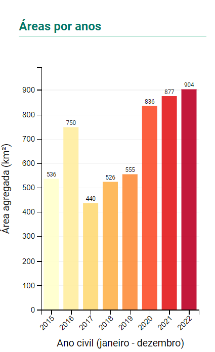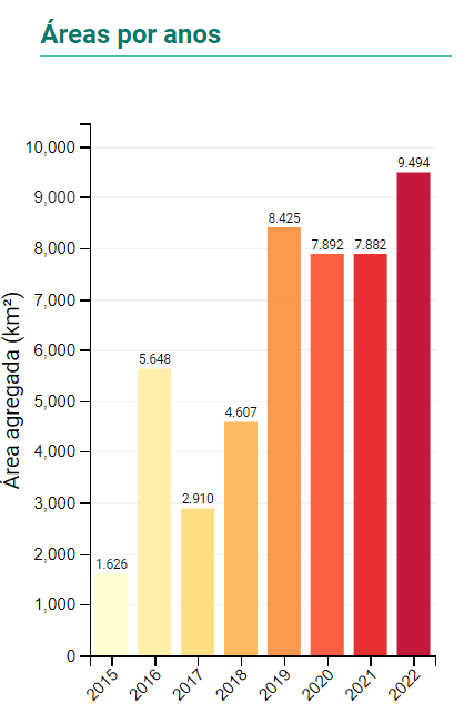 A destruição se concentrou no Estado do Pará (48,12%), seguido de Mato Grosso (16,61%), Amazonas (15,76%) e Rondônia (7,59%). No acumulado entre janeiro e outubro de 2022, houve recorde da série histórica: uma área total destruída de 9.494 km², superando o registrado nos outros anos inteiros da série, mantendo o padrão Bolsonaro de destruição.