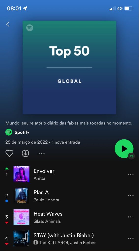 A música, que foi lançada em novembro de 2021, dominou a internet após viralizar nas redes sociais com o seu desafio de dança feito por fãs e também por celebridades. Mais cedo, Anitta também conquistou o topo da playlist Today’s Top Hits, uma das mais importantes do Spotify.