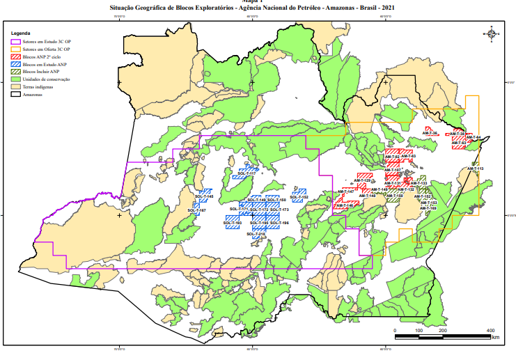O laudo técnico indica interferências de diversos blocos em oferta com terras indígenas e unidades de conservação, somando 42 interferências, segundo o MPF.
