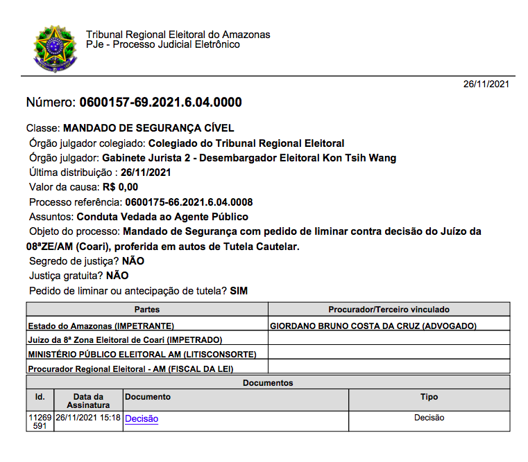 Confira a decisão, na íntegra, do desembargador Kon Tsih Wang: