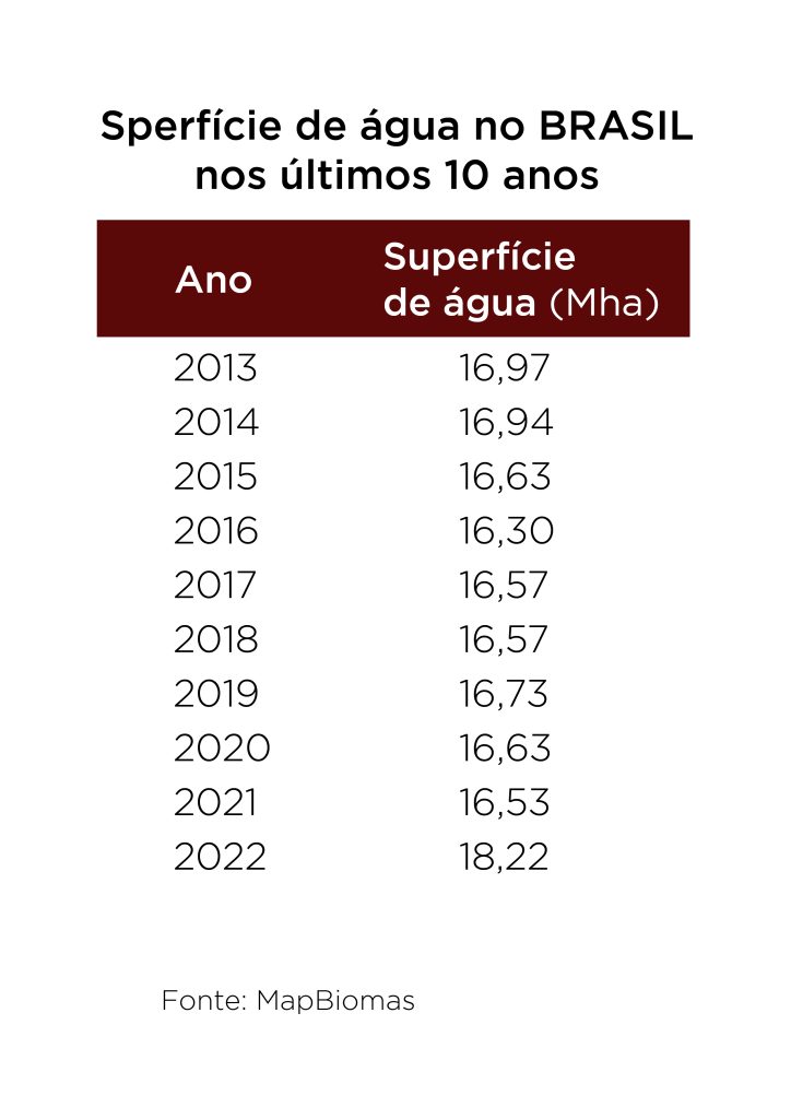“A mudança no cenário de 2021 para 2022 gera, sim, um alento, mas não colocaríamos como motivo de comemoração, estamos observando uma redução quase constante na superfície de água no Brasil”, alertam o pesquisadores.