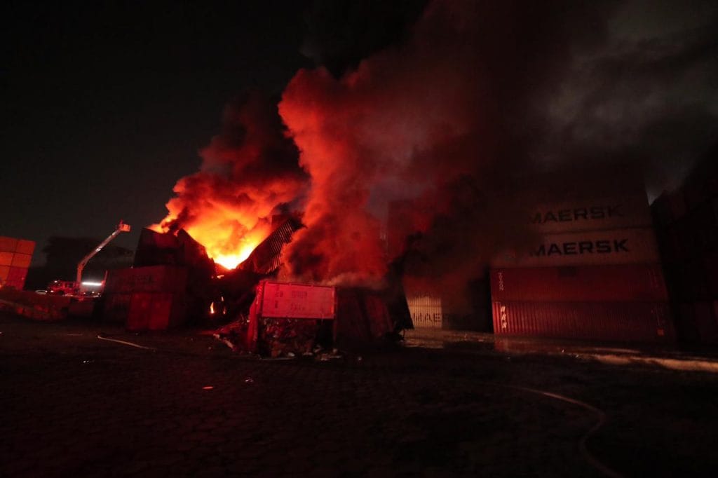 Às 22h de ontem, 18, o risco de explosão no local já havia reduzido, mas o incêndio continuava confinado aos contêineres já queimados. Uma das ações era evitar a propagação do fogo para outros contêineres. Já haviam sido gastos 200 mil litros de água.