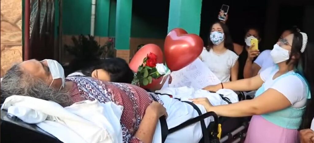 Maria das Graças Gonçalves foi recebida com fogos, balões, flores e muita festa pelos 9 filhos e o esposo, José Gonçalves, que também contraiu a doença e alcançou a cura. Ele ficou internado no Hospital de Campanha de Rondônia, na capital. Maria e José combinam não só pelos nomes, mas também na idade (que é a mesma) e na garra pela vida. Os dois adoeceram na mesma época, no período crítico em que a ocupação de leitos alcançava a lotação máxima nos hospitais do Estado.