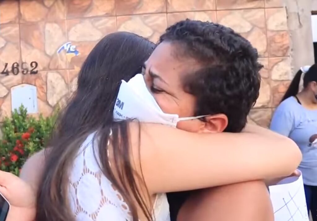 Marinete abraça familiares, emocionada. (Reprodução/Governo de Rondônia)