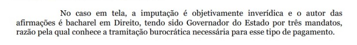 Segundo o TRE-AM, contudo, o governador comprovou documentalmente que, ao contrário de que foi afirmado no vídeo de Amazonino, o recurso do Fundef ainda não foi liberado porque aguarda a expedição de um alvará para que o Estado possa fazer uso da verba. O juiz Márcio Cavalcante reforça que Amazonino Mendes já foi governador do Estado por três mandatos, razão pela qual conhece a tramitação burocrática necessária para esse tipo de pagamento.