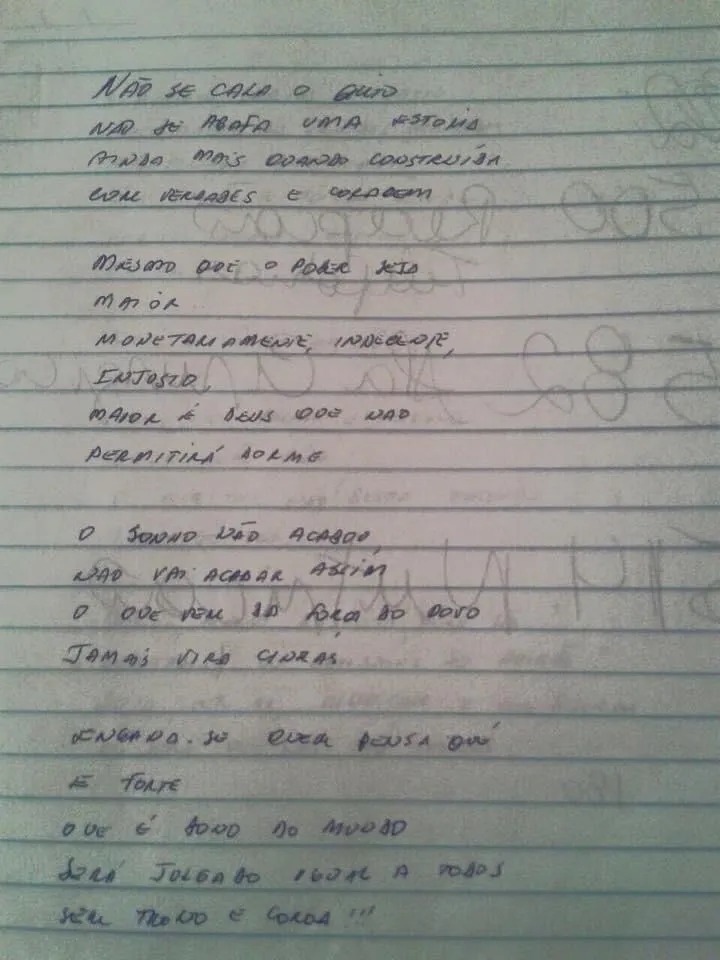 Na carta, Souza ressalta também que não se cala uma história construída com verdades e coragem. “Não se abafa uma história, ainda mais quando construída com verdades e coragem, mesmo que o poder seja maior, monetariamente, indecente, injusto, maior é Deus que não permitirá dormir. O sonho não acabou, não vai acabar assim, o que vem da força do povo jamais vira cinzas”, escreveu o ex-deputado estadual.
