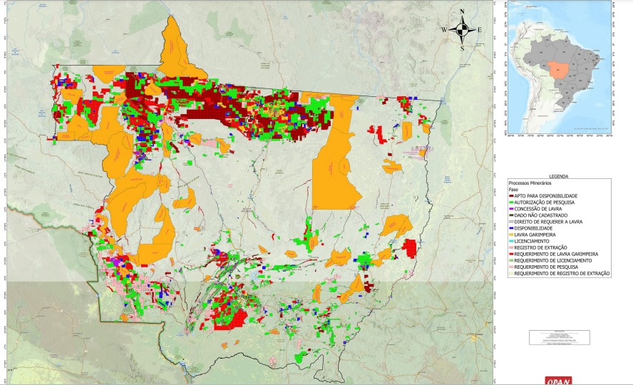 Segundo o relatório, os processos minerários têm se intensificado em todas as suas fases em Mato Grosso. Desde o requerimento de pesquisa até a fase exploração. Os títulos minerários principais são de Autorização de Pesquisa, Concessão de Lavra, Licenciamento e o Requerimento de Lavra Garimpeira (RLG).