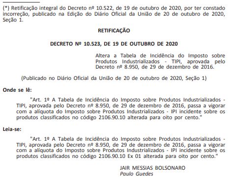 A correção foi solicitada pela liderança parlamentar após ser detectada a ausência técnica que diferenciaria a produção de concentrados do Polo Industrial de Manaus (PIM), que fixaria em definitivo os 8% da alíquota dos refrigerantes. Com a modificação no Diário Oficial da União (DOU), a vantagem do segmento industrial distingue a produção local, das demais indústrias do mesmo setor ao redor do País, que pressionavam Bolsonaro a não renovar os 8%.