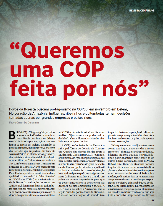 A reportagem da CENARIUM foi uma das primeiras a trazer a preocupação de comunidades tradicionais sobre a falta de espaço para participação ativa no evento. Na matéria, lideranças da Amazônia expressam temor de que a COP30 se torne apenas um palco para acordos econômicos, excluindo aqueles que vivem e protegem a floresta.