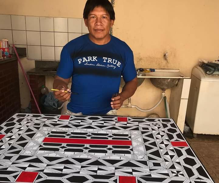 O indígena, que também é artesão de colares, pulseiras, cordões, começou a pintar em 2018 para mostrar a arte da aldeia com pinturas tradicionais. Mas por um período, ficou sem desenhar para construir ocas em São Paulo e em Brasília.