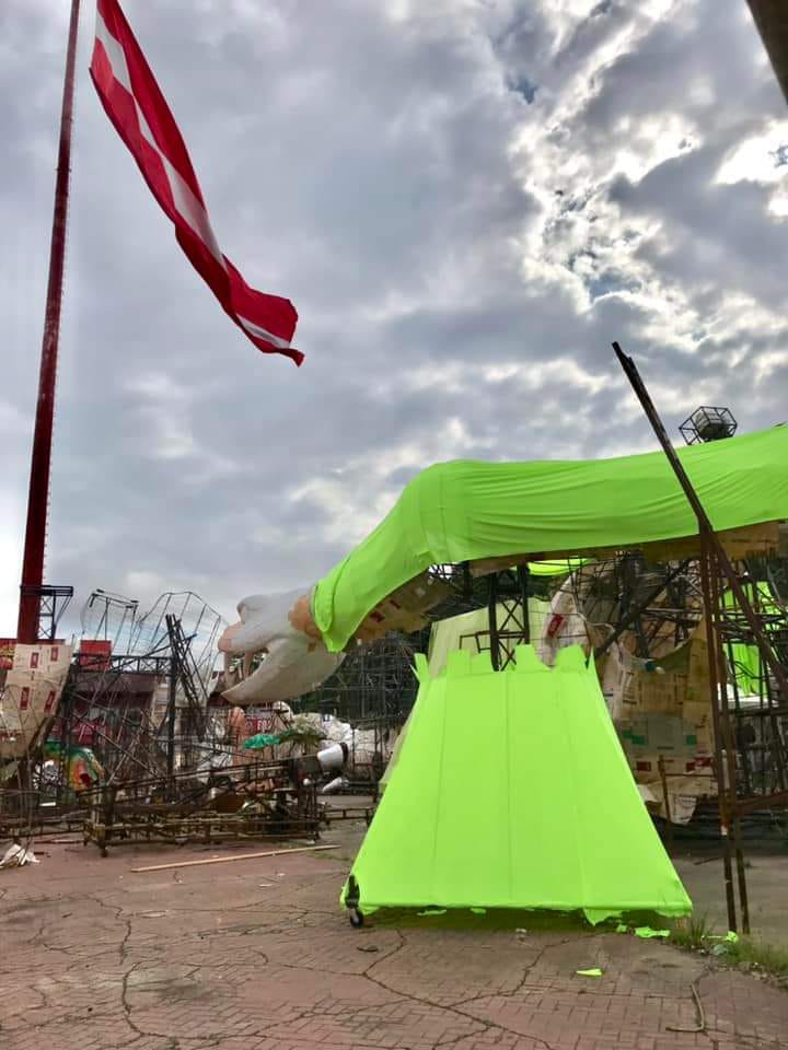 “Três alegorias ainda faltam fazer a pastelagem, mas em dez dias eles terminam”, garantiu. A pastelagem é o processo feito na estrutura alegórica, após o revestimento, e que antecede a pintura do módulo.