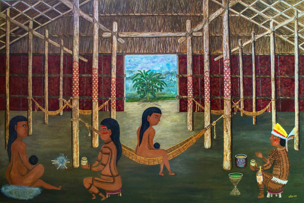 Dhiani é outro artista de renome nacional, que retrata em suas telas, principalmente, a cultura primitiva e ancestral da Amazônia na cosmovisão indígena, dentro de uma expressão poética original e muito própria de um artista que vê na arte a possibilidade de salvaguardar a memória ancestral de seu povo Wanano.