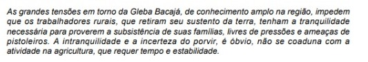 Para o MPF, a responsabilidade pela situação é da União que não pode deixar de transferir recursos suficientes para que o Incra desempenhe suas funções. De acordo com as sentenças, a omissão estatal deixa as famílias afetadas em uma situação intolerável de desproteção em relação ao cenário de violência agrária na área e de ausência de amparo e incentivo do Estado à atividade produtiva que desenvolvem.
