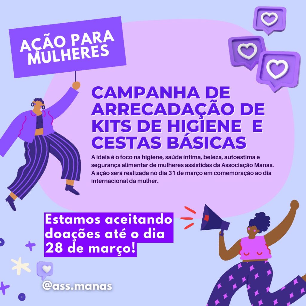Kits de higiene pessoal e cestas básicas são o foco da campanha e podem ser doados na sede da associação. O endereço deve ser solicitado, via WhatsApp, pelo número (92) 98428 2832. Aos que não tiverem como ir até o prédio da associação, podem doar solicitando a facilitação de coleta pelo mesmo número. De acordo com a advogada e presidente do “Manas”, a meta é beneficiar 200 mulheres em situação de pobreza e violência no dia 31 de março.