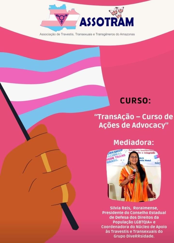 MANAUS – A Associação de Travestis, Transexuais e Transgêneros do Amazonas (Assotram), vai promover nos dias 21 e 22 de maio, o curso intitulado “TransAção- Curso de Ações de Advocacy“, a agenda é voltada para a população LGBT e será ministrada pela ativista trans e presidente do Conselho Estadual de Defesa dos Diretos da População LGBTQIA+, Silvia Reis.