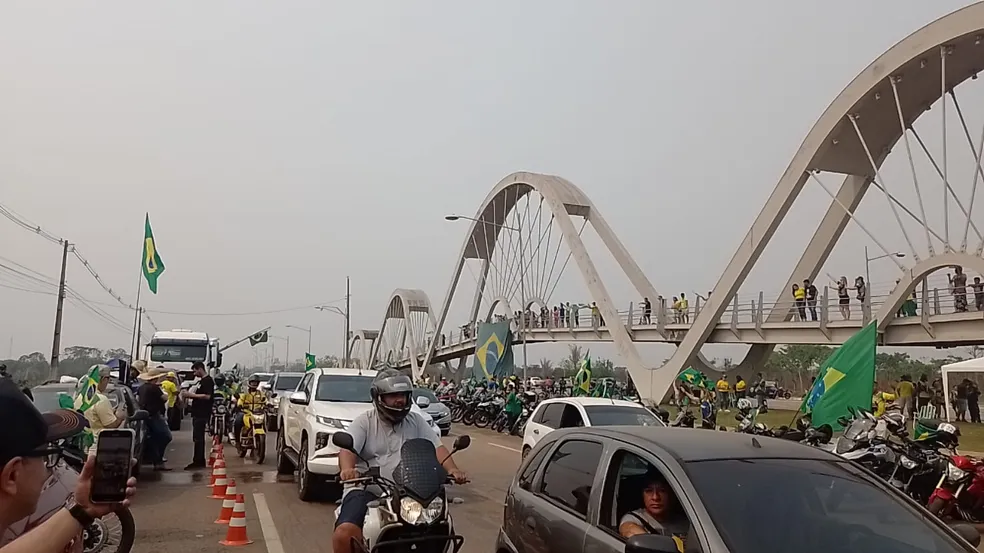 Os apoiadores do presidente em Porto Velho também seguiram o trajeto proferindo palavras de apoio a Bolsonaro. Diferente de Vilhena, houve congestionamento e o trânsito ficou pesado.