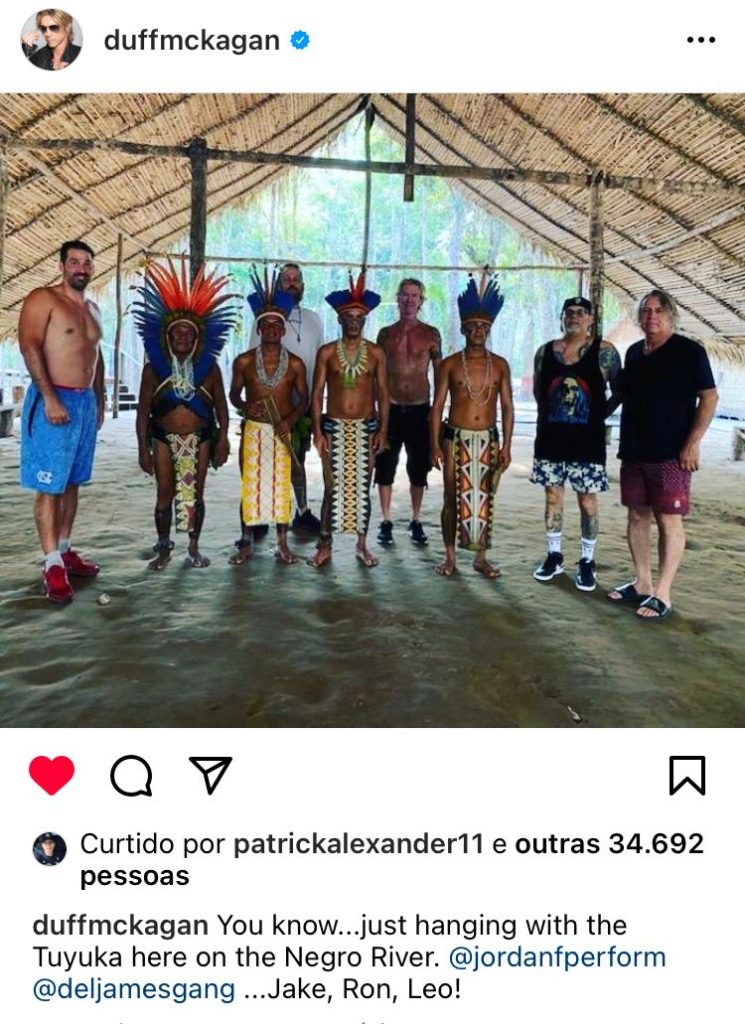 Em outra publicação, o músico apareceu em uma maloca (uma espécie de cabana comunitária), ao lado de outros integrantes do Guns N’ Roses e de indígenas Tuyuka. “Você sabe… Apenas dando um passeio com os Tuyuka aqui no Rio Negro…”, disse Duff McKagan, em uma publicação no Instagram.