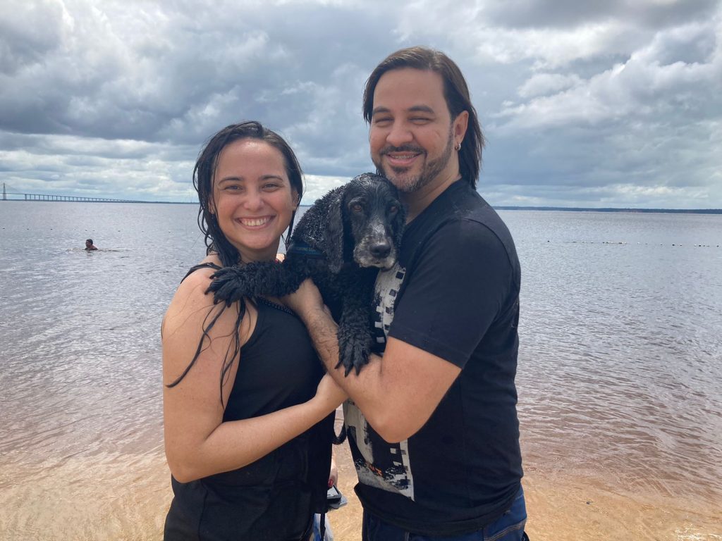 Além da família, a população também aproveitou o feriadão para curtir o dia com os pets. O músico nordestino Daniel Lima, de 35 anos, e a namorada manauara Priscila Lima, de 34 anos, levaram o cachorro de estimação Bil, de 12 anos, para tomar um banho na praia da Ponta Negra pela primeira vez.