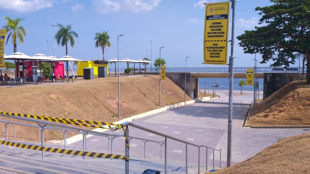 MANAUS – Em uma tarde ensolarada neste domingo, 20, na capital amazonense, com temperatura de 35 graus, banhistas não compareceram a um dos principais pontos turísticos de Manaus, a praia da Ponta Negra. O complexo foi interditado na sexta-feira, 18, para evitar aglomerações e a disseminação do novo Coronavírus.