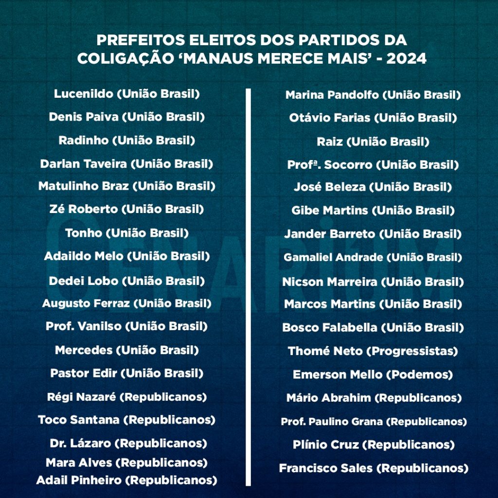 MANAUS (AM) – A base aliada do governador do Amazonas, Wilson Lima (União Brasil), formada pelos partidos Republicanos, Progressistas, Podemos, PMB, PSB, PRD e União Brasil, saiu de 18 prefeitos eleitos, em 2020, para 35 nomes eleitos às prefeituras em 2024, considerado um recorde eleitoral.