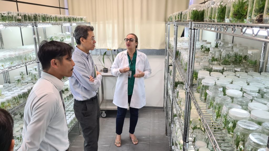 Assim, o diretor-presidente da entidade, Hiroshi Hara, o diretor do Departamento de Comércio Exterior, Hiroyuki Saito, e a analista de Comércio Exterior, Elina Kawaguchi, reuniram com o gestor do CBA, Fábio Calderaro, para entender sobre as atividades do Centro no fomento ao empreendedorismo biotecnológico local e os avanços obtidos pela instituição e seu corpo científico nos diversos processos desenvolvidos no CBA, em Manaus.