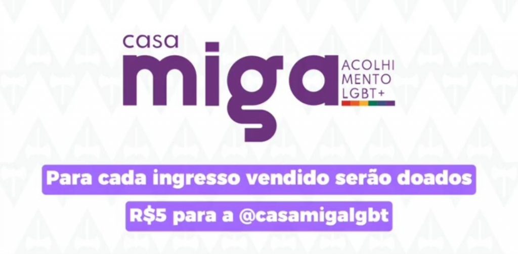 Além disso, a cada venda de ingresso, a coordenação do evento vai doar R$ 5 para Casa Miga LGBT (primeira casa de acolhimento para LGBTs em situação de vulnerabilidade social, incluindo refugiados. Para mais informações os interessados podem acessar o perfil do bloco na rede social Instagram: @sapatonicaoficial.