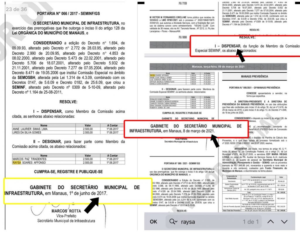 Raysa Soares Affonso é formada pela Universidade do Estado do Amazonas (UEA) desde 2016, além de ser pós-graduada em Direito Público (UEA) e Direito Tributário (FMF). A advogada ocupou o cargo de assessora jurídica na Secretaria Municipal de Infraestrutura (2017 – 2021) e, atualmente, exerce no Centro de Cooperação Técnica do Interior (Ccoti) da Assembleia Legislativa do Amazonas, desde 2021. Tanto Maruska quanto Raysa possuem biografia e o currículo que mostram que ambas possuem qualificação técnica para ocupar tais funções por mérito próprio.