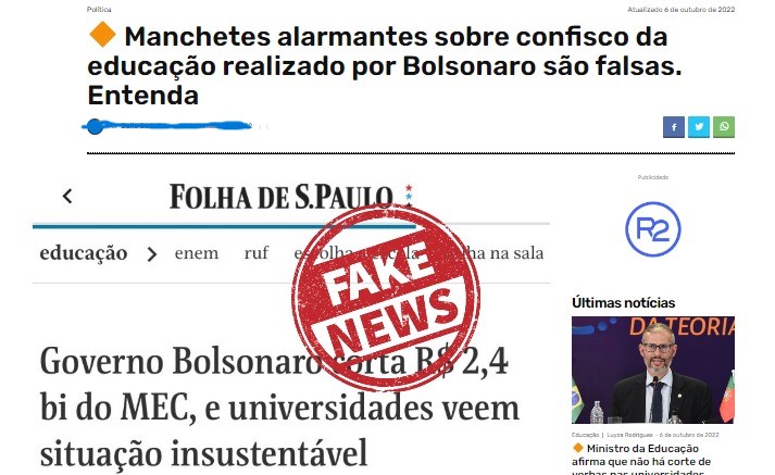 MANAUS – Políticos do Amazonas e aliados do candidato à reeleição para Presidência da República, Jair Bolsonaro (PL), tentam distorcer a informação sobre o novo bloqueio no orçamento de R$ 2,4 bilhões do Ministério da Educação (MEC) até dezembro. Alguns sites de notícias publicaram matérias chamando de fake news e acusando a informação sobre o bloqueio no MEC de “manchetes alarmantes” ou “sites esquerdistas”.