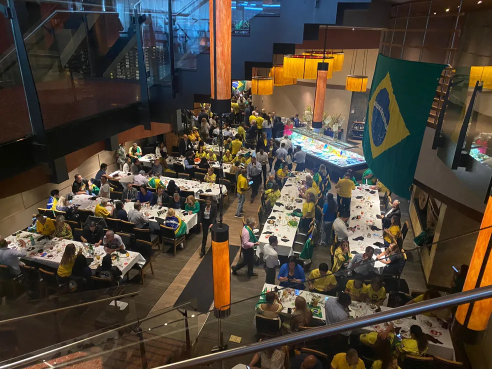 Na porta do estabelecimento, havia uma lista com nomes dos bolsonaristas que vieram de diversas partes dos Estados Unidos para acompanhar a agenda do presidente, em Nova York, e participaram do almoço.
