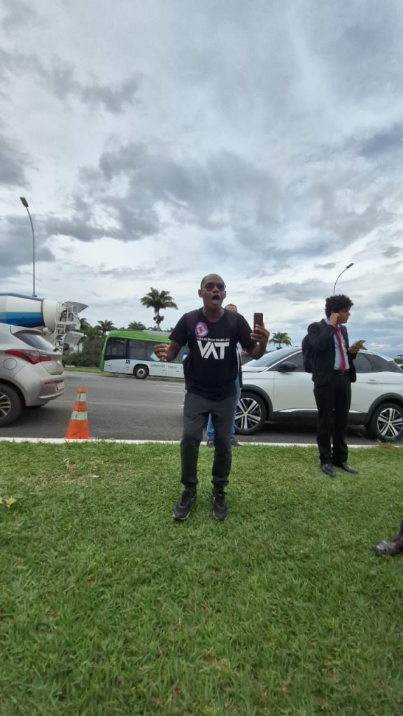 O garçom e membro do movimento Vida Além do Trabalho (VAT) Luiz Jesus dos Santos, 49, fez um protesto contra o ex-presidente Jair Messias Bolsonaro, na tarde desta quarta-feira, 26, na entrada do Senado Federal, em Brasília, quando começou a gritar palavras de ordem contra o ex-mandatário. Bolsonaro havia acabado de fazer um pronunciamento à imprensa, minutos após ele e mais sete ex-auxiliares terem sido tornado réus, pela Primeira Turma do Supremo Tribunal Federal (STF), por tentativa de golpe de Estado e outros quatro crimes.